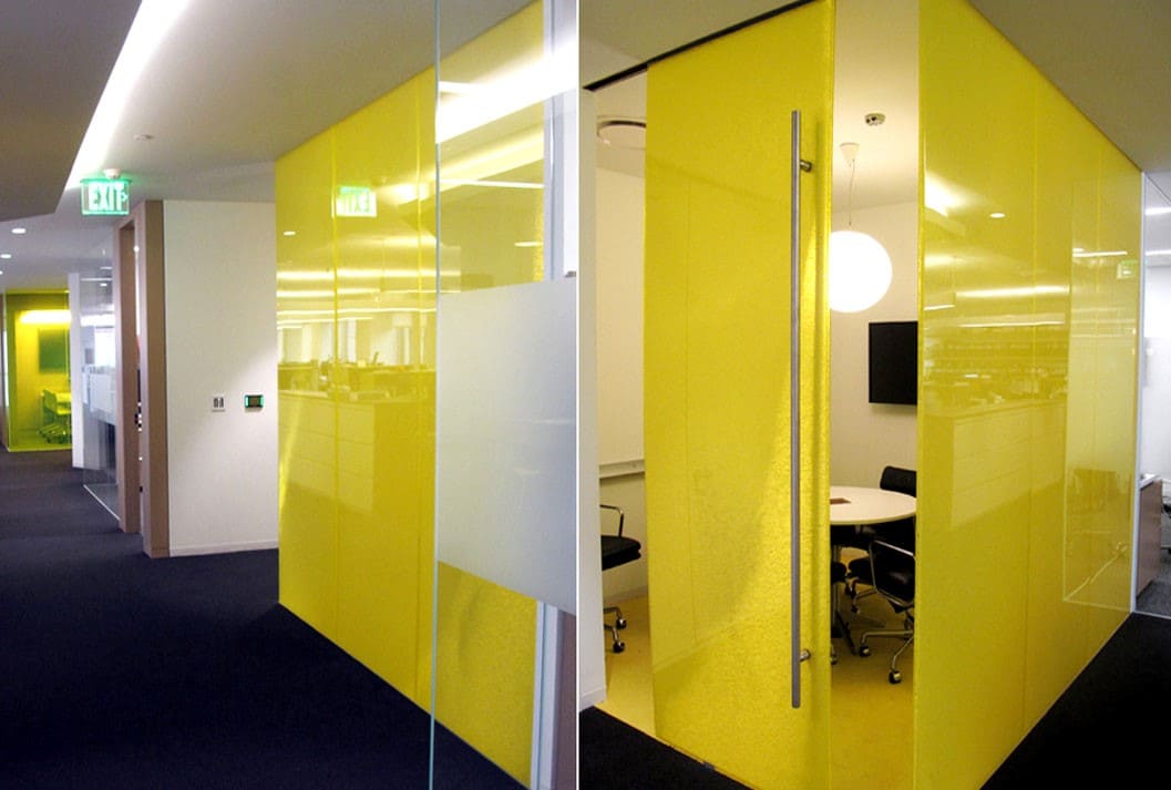 پارتیشن اداری مدرن با شیشه های رنگی