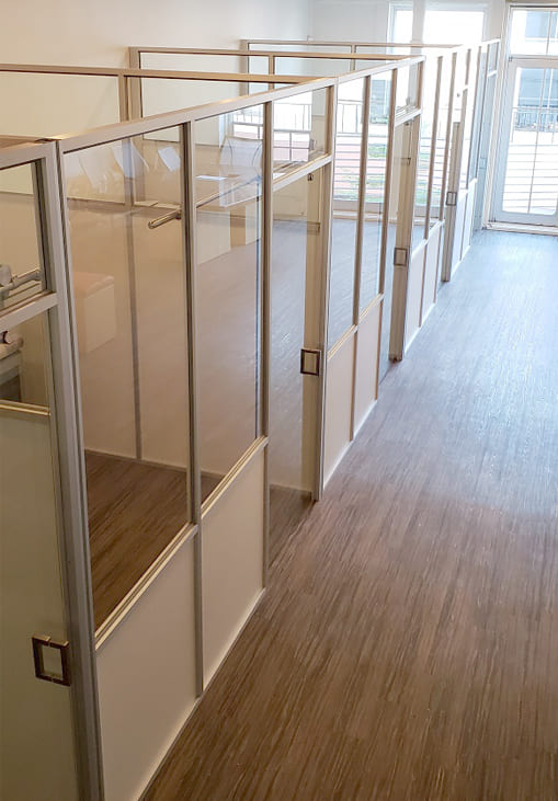 برای مکان های خاص در دفتر خود، می توانید با درهای لولایی و کشویی که به راحتی قابل نصب هستند، حریم خصوصی بیشتری اضافه کنید