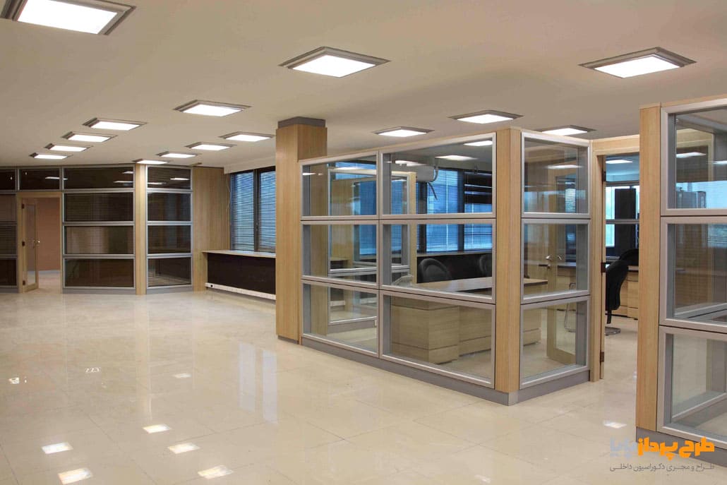 پارتیشن اداری در هر فضایی به منظور جدا نمودن فضاهای مختلف از یکدیگر استفاده می شود. پارتیشن اداری مدرن انواع گوناگونی دارد که با توجه به نوع و کاربری هر فضا می توان از آن ها استفاده کرد. پارتیشن اداری به چند نوع ام دی اف ، شیشه ای ، آلومینیومی و یا ترکیبی تقسیم می شوند. پارتیشن های ترکیبی از متریال اصلی ام دی اف  ساخته شده اند و در قسمت هایی از پارتیشن از قابهای آلومینیومی و شیشه استفاده شده است.