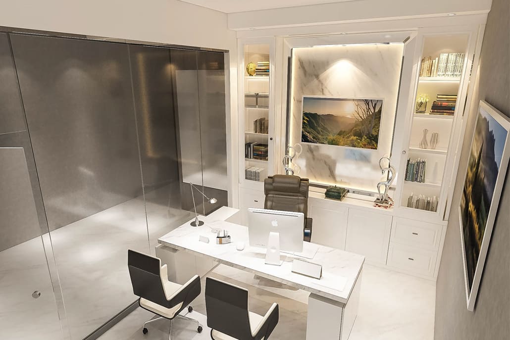 4. طراحی داخلی دفتر با ظرافت رنگ سفید