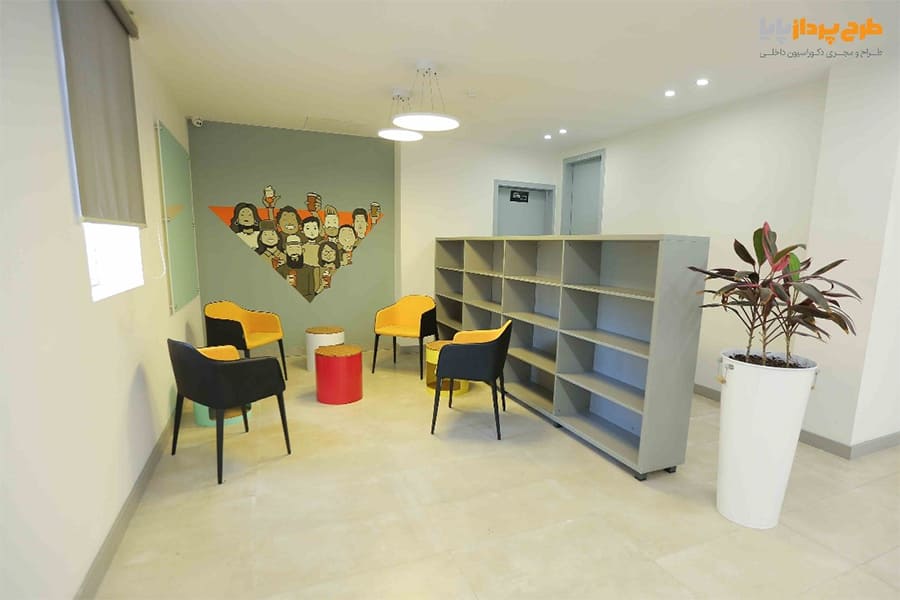 استفاده از رنگ های خاص در قسمت هایی از فضا همیشه می تواند به محیط روح ببخشد. با توجه به رنگ سازمانی شرکت و یا کاربری فضایی که برای آن طراحی انجام می شود، و شناخت خاصیت روانشناسی هر رنگ می توانید بهترین رنگ را برای فضا انتخاب کنید. رنگ های گرم و زنده برای محیط هایی که در آن کارهای خلاقانه و یا نوآورانه انجام می شود می تواند گزینه ی مناسبی باشد. رنگ هایی مانند زرد ، نارنجی، قرمز و .... . البته باید این موضوع را در نظر بگیرید بیش از اندازه از این رنگ ها استفاده نکنید تا در طولانی مدت اذست کننده نباشند. چرا که رنگ ها سطح انرژی را در افراد بالا می برند. بهترین راه استفاده از این رنگ ها در بخش هایی از فضا و ترکیب آن ها با رنگ های خنثی است. در محیط هایی که به خودی خود تنش فضا بالاست بهتر است از رنگ های سردی مانند آبی ، سبز و یا بژ استفاده شود تا انرژی فضا را تعدیل نماید.