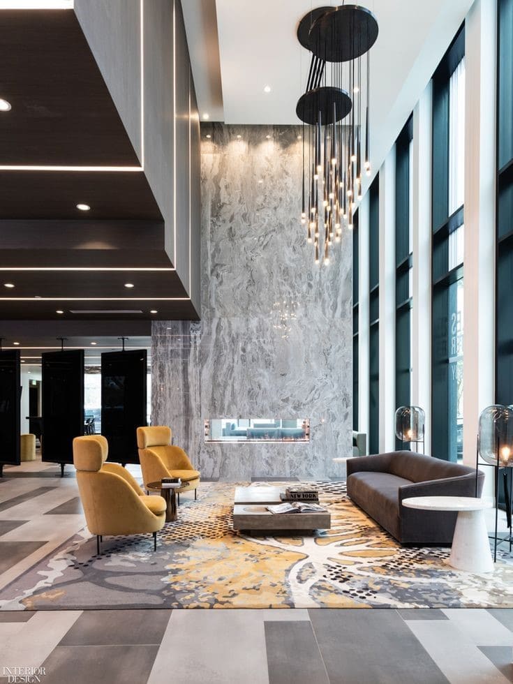 کفپوش لابی از جمله عناصر بسیار مهم در ساختار لابی است. کفپوش های سنگی و سرامیکی با طرح متنوع می توانند گزینه مناسبی برای کفسازی این قسمت باشند. اگر مجموعه شما یک سازمان رسمی و بزرگ است بهتر است از طرح هایی برای کفپوش ها استفاده نمایید که تداعی کننده حس لاکچری در فضا باشند. همچنین متریالی که انتخاب می کنید باید قابلیت نظافت سریع و آسان را داشته باشد. چرا که رفت و آمد در این فضا زیاد است و ممکن است کف زود به زود آلوده شود.