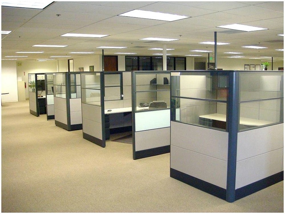 چیدمان اتاقک اداری یا CUBICLE: با ترند شدن انواع چیدمان پلان باز در طراحی اداری ، مدل های چیدمان بسته مانند اتاقک پارتیشن اداری محبوبیت گذشته را ندارند. اگر قصد بازسازی فضای کاری خود با پارتیشن اداری را دارید توصیه میکنیم برای بهره وری بیشتر کارکنان از چیدمان CUBICLE فاصله بگیرید و به سمت طراحی های پلان باز بروید