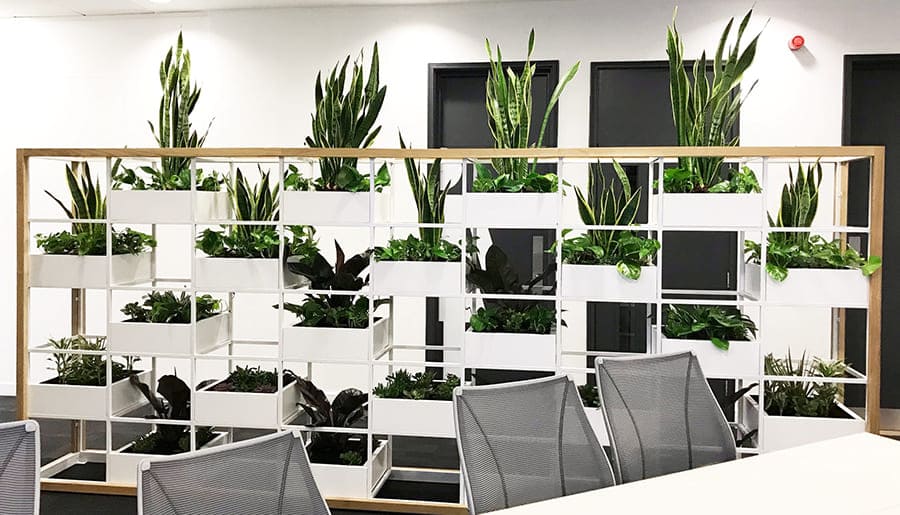در طراحی داخلی مدرن  استفاده از دیوار های گیاهی روندی رو به رشد داشته است به غیر از افزودن یک رنگ طبیعی، ایجاد فضای سبزی کوچک  به دفتر شما مزایای دیگری نیز دارد. آنها می توانند آلاینده های هوا را کاهش دهند، دمای هوا را پایین نگه دارند و به ایجاد یک محیط آرام کمک کنند. با اتصال گلدان های کاشته شده به به یک پارتیشن اداری اصلی، می توانید یک بوم خالی را به یک فضای جذاب در محیط کاری تبدیل کنید.