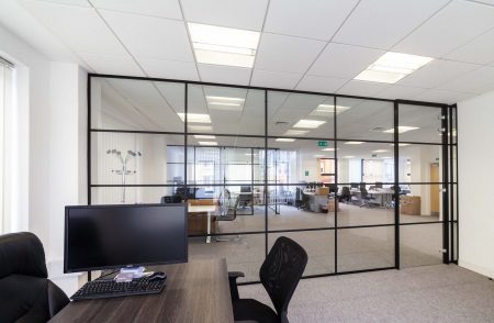 پارتیشن اداری شیشه ای به سبک صنعتی