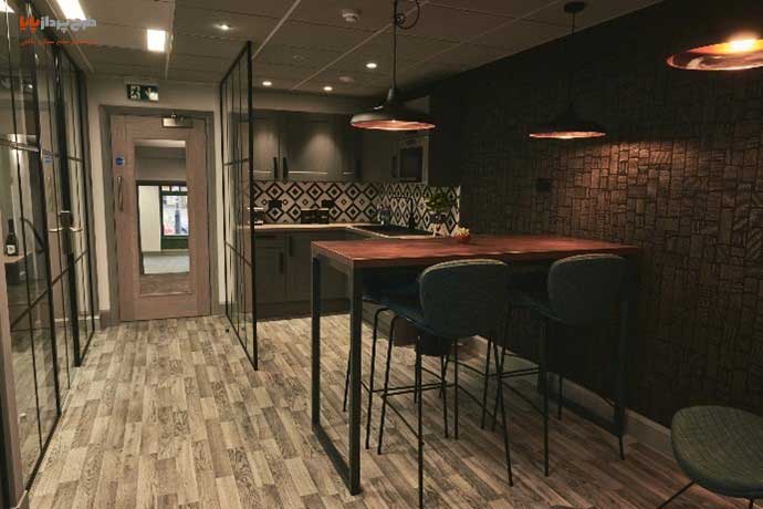 ممکن است در یک شرکت بزرگتر متوجه شوید که تعداد زیادی از کارکنان برای ناهار به خارج از محل کار می روند، به یک کافی شاپ یا ساندویچ بار. اگر فضا اجازه می دهد میتوانید به کمک پارتیشن اداری یک فضای کافی شاپ یا بوفه در شرکنت ایجاد کنید این فضاسازی باعث می شود کارکنان تشویق شوند تا در زمان استراحت با یکدیگر معاشرت کنند و روابط کاری بهتری با همکاران ایجاد کنند
