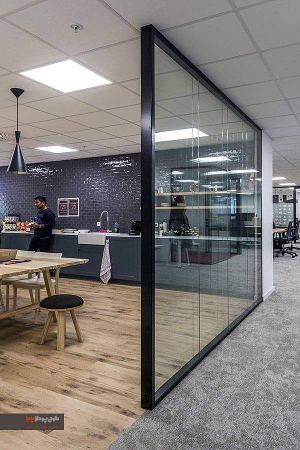 با پارتیشن تک جداره یا دو جداره، به همراه استیکر های مات کن شیشه، یا انواع پارتیشن سالید با متریال انتخابی خود (فلز، چوب و غیره) - می توانید فضاهای کاری را بدون پارتیشن بندی کامل فضا به شیوه سنتی ساختار دهید و بهبود ببخشید.