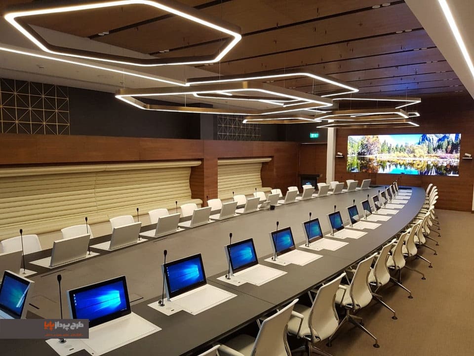 اتاقهای کنفرانس هوشمند اتاقهایی هستند که برای استفاده از فناوری های هوشمند مانند نرمافزار کنفرانس ویدیویی طراحی شدهاند. از این قبیل اطلاعات می توان برای بهبود شرایط اتاق جلسه و بهینه سازی و بهره وری کارکنان استفاده کرد