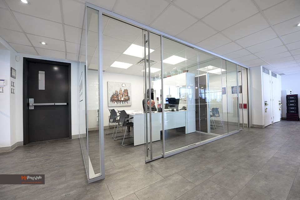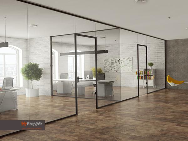 پارتیشن شیشه ای: پارتیشن های شیشه ای روشی مدرن و زیبا برای تقسیم بندی فضا هستند. آنها ظاهری باز و روشن ارائه می دهند که مانع از ورود نور طبیعی نمی شود و باعث می شود فضا جادارتر به نظر برسد. پارتیشن اداری شیشهای را میتوان برای حفظ حریم خصوصی مات کرد، یا برای تزیین بیشتر میتوان آنها را حکاکی یا رنگ کرد.