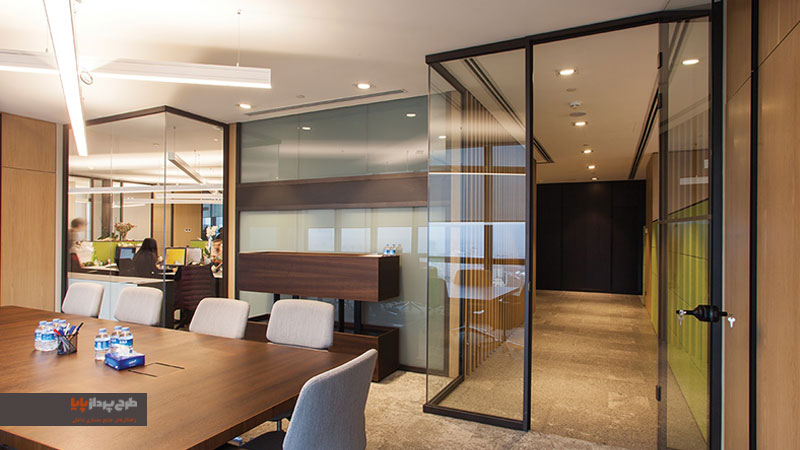 پارتیشن های شیشه ای: این پارتیشن ها از پنل های شیشه ای ساخته شده اند که نور طبیعی از میان آنها عبور می کند. این پارتیشن ها ظاهری شیک و مدرن ارائه می دهند و برای ایجاد اتاق های جلسه خصوصی یا دفاتر اجرایی ایده آل هستند.