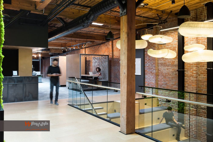 Slack، شرکتی که به سادهسازی ارتباطات در محل کار اختصاص دارد، آنچه را که به مشتریان معرفی میکند، اجرا کرده است. در دفتر slack در ونکوور، آنها فضایی را طراحی کرده اند که ارتباطات شفاف و کارآمد را ارتقا میدهد و در عین حال آسایش و حریم خصوصی کارکنان را حفظ می کند. از پارتیشنهای شیشهای برای ایجاد اتاقهای جلسه و فضاهای خصوصی استفاده شد تا اطمینان حاصل شود که جریان ایدهها و اطلاعات هرگز مختل نمیشود.