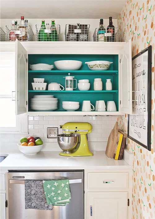 یکی از فضاهایی که شاید نادیده گرفته شود، قسمت بالای کابینتهاست. چه کابینت آشپزخانه و چه کابینتی در سرویس بهداشتی ، با قرار دادن چند سبد کوچک بالای آنها می توانید برای خود فضای بیشتری ایجاد کنید. از آن جایی که ممکن است دسترسی به بالای کابینت ها سخت باشد تمیز کردن آن نیز کمی سخت تر است و گرد و خاک و چربی بیشتری روی آن می نشیند. سبدی از جنس پارچه یا فلز روکش دار انتخاب کنید تا تمیز کردن آن نیز راحت تر باشد. وسایلی را در این سبدها قرار دهید که مطمئنید تا مدتهای زیادی به آنها نیازی نخواهید داشت.