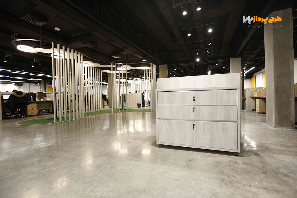 استفاده گسترده از متریال شیشه به عنوان پارتیشن های جدا کننده و بهره گیری از نورپردازی، در کنار توجه به ارگونومی و استانداردهای ایمنی، سبب شد تا ضمن حفظ زیبایی، محیطی دوستانه، زیبا و عملیاتی فراهم شود.
