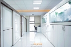 با استفاده از تراریوم و گیاهان طبیعی انرژی مثبتی به فضا بخشیدیم و با استفاده از رنگ های روشن و نورپردازی مناسب ، فضایی انرژی بخش و آرام خلق کردیم. تمامی فضاها به خوبی با پارتیشن های ام دی اف و روکش High Glass تقسیم بندی شده اند. همچنین برای بسته نشدن فضا ها در قسمت هایی از پارتیشن ها شیشه دو جداره کار شده است.