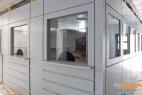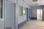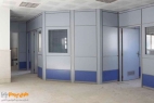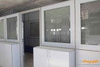 برای جلوگیری از بسته بودن فضا و خسته کننده شدن آن ف در قسمت هایی از پارتیشن ها شیشه های دو جداره همراه با کرکره هایی در نظر گرفته شده است. پارتیشن های این پروژه همگی ام دی اف با ترکیب رنگ طوسی و آبی هستند.