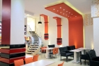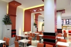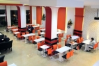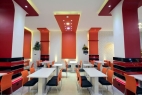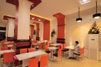 این پروژه در ابتدا یک موسسه مالی و اعتباری بود. این ساختمان دارای دو طبقه و نیم بود و برای تبدیل آن به فضای فست فود مستلز تخریب و بازسازی آن بودیم. ایجاد یک فست فود در ساختمان فعلی با کاربری کاملا متفاوت نیازمند ایجاد زیرساخت های اصولی بود. این بنا 650 مترمربع زیربنا داشت و ظرف 9 ماه تمام مراحل تخریب، بازسازی و تجهیز فضا انجام گرفت. در طراحی این فست فود از ترکیب رنگ قرمز و نارنجی به عنوان رنگ غالب استفاده شده است که نمایانگر هیجان و نشاط آور است و می تواند رنگ مناسبی برای برانگیختگی اشتهای مخاطب نیز باشد. همچنین نورپردازی این پروژه بسیار منحصر بفرد و در راستای هدف اصلی پروژه یعنی ایجاد فضایی دلنشین و خوشایند برای مخاطب بوده است. استفاده نورهای خطی در قسمت هایی و ترکیب آن با نورهای سقفی و لوسترهای مدرن مشکی به خوبی فضای مورد نظر را ایجاد کرده است.