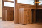 این پروژه دفتر یک کارخانه صنعتی و تولیدی است و open office بودن آن برای کارفرما از اهمیت بالایی برخوردار بوده است. پارتیشن بندی در بخش پرسنلی به گونه ای بوده است که این خواسته کارفرما به خوبی اجرا شود. پارتیشن ها به ارتفاع 140-160 سانتی متر، حریم کوچکی دور میزهای کارشناسی ایجاد کرده است. ارتفاع پارتیشن ها تا سطح میز و با پیش بینی سیستم برق و تاسیسات لازم، بوده است. از ارتفاع میز به بالا برای حفظ دید پرسنل و جلوگیری از خفگی فضا شیشه کار شده است.