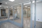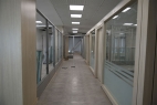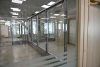 با توجه به کاربری این فضا که اداری است و به نوعی رسمی محسوب می شود پارتیشن های کار شده در این پروژه ترکیبی از MDF و شیشه است. این پروژه اولین پروژه ای است که در آن بزرگترین سایز قاب MDF اجرا شده است. شیشه ها به صورت تک جداره به ضخامت 10 میلیمتر و سکوریت هستند. حجم پارتیشن های کار شده در این ساختمان 2000 متر بوده است. در قسمت هایی از فضا برای تفکیک فضاهای داخلی از پاتیشن های آلومینیومی استفاده شده است.